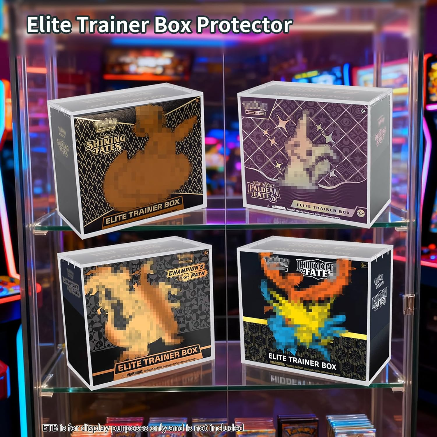 Preserve and showcase your prized collection with the Elite Trainer Box Protector Case, the ultimate display and defense solution for sealed Pokémon ETBs. Built from crystal-clear, scratch-resistant acrylic, this magnetic case protects your collectibles from dust, UV light, and moisture while offering a flawless, museum-quality view.